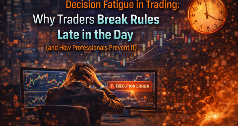 This blog explains decision fatigue in trading — how it develops, why it destroys execution quality, and why professionals design systems around human limits, not ideals.